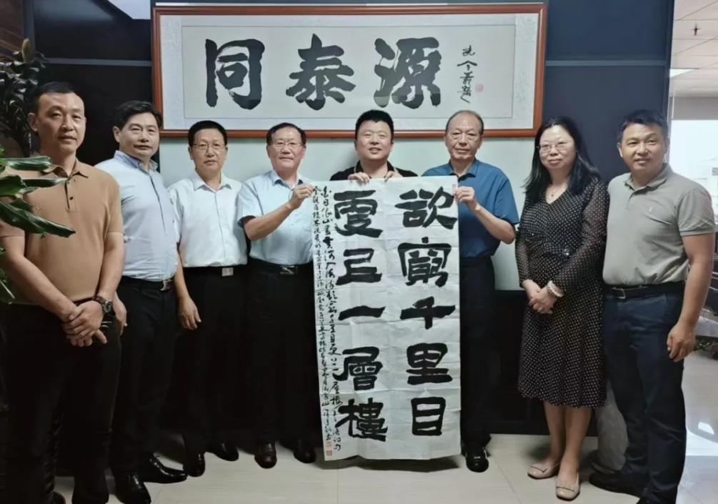 最后,參觀完同泰源公司后,書法家徐建韻院長向張永華董事長贈送個人書法墨寶,祝愿張永華董事長公司紫氣東來千祥云集,欲窮千里目,更上一層樓。